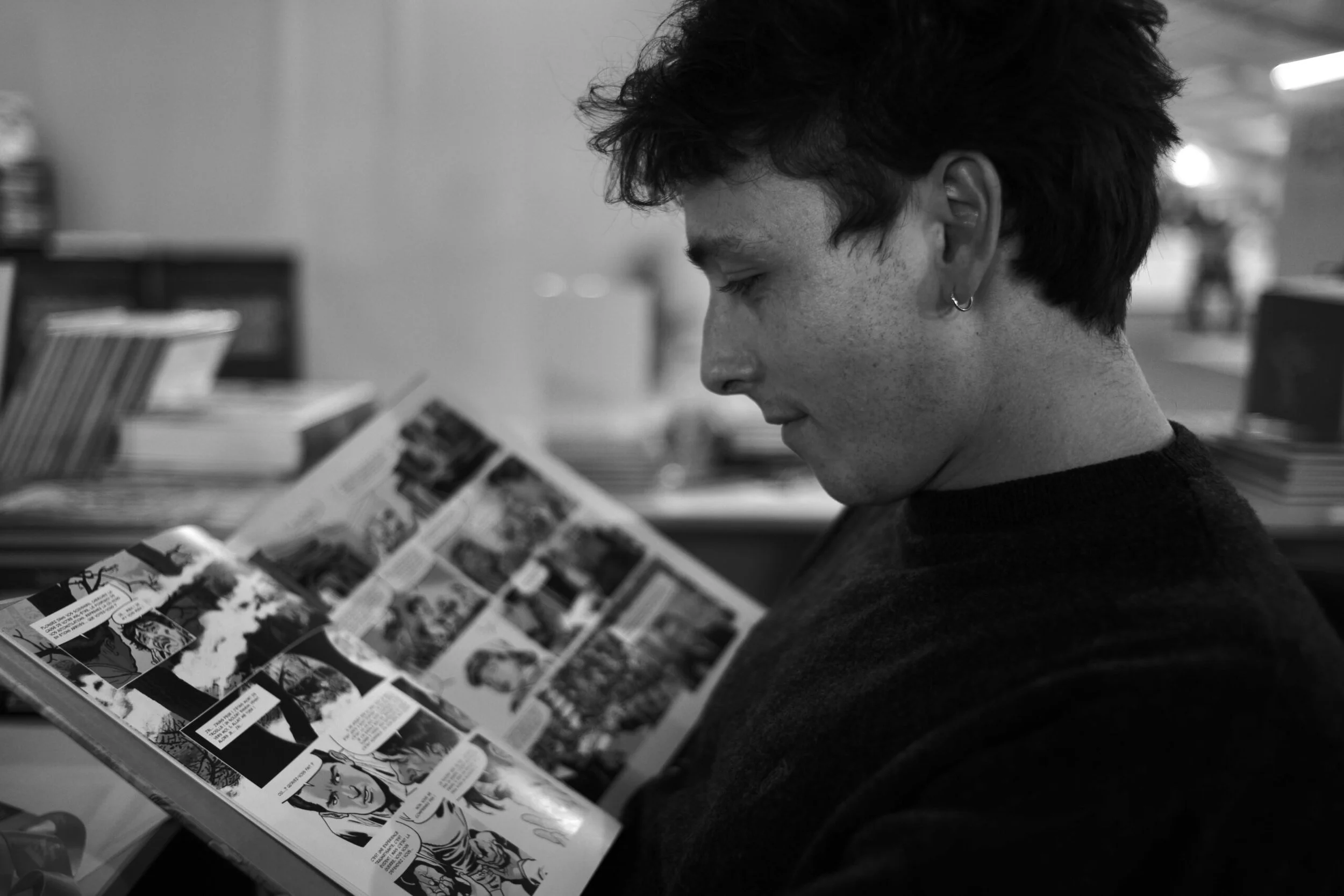 Illustrateur et auteur de bande dessinée, Jean Dalin développe un univers sensible où le dessin devient un espace de récit et de matière. Il vit et travaille à Lyon, entre fleuves et monts d’Or, où il exerce sa pratique entre projets personnels et collaborations avec différentes agences et maisons d’édition. Né en 1993 à Nantes, après une formation de gravure et l’obtention d’un diplôme en dessin narratif, il cofonde l’association « Un Fanzine par Mois » un terrain d’expérimentation où il affine sa pratique d’illustrateur. Après plusieurs publications dans la micro-édition et la scène indépendante, ses travaux sont publiés dans Reliefs, Métal Hurlant et Kiblind. En 2024, il signe sa première bande dessinée, La trahison d’Olympe, parue aux éditions Sarbacane.